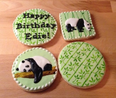 My colleagues gave me an opportunity to do my cookie thing this week.  The staff threw a panda-theme birthday party for our crazy, wonderful, should-be-in-a-sitcom Managing Director.  Pandas are her thing.  My task was to make cookies (obviously; it is my thing.)