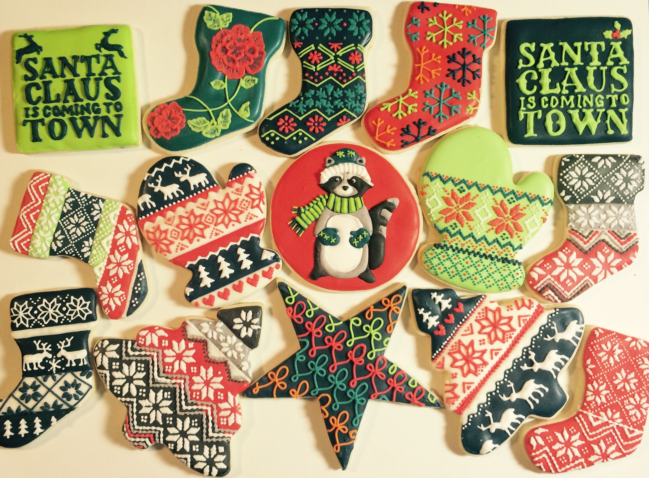 I try to pace my posts this time of year, but inevitably, I end up doing a Christmas Eve blog dump. I made a lot of new designs this year and a lot of well-worn classics (it’s hard to do new things when you make over 100 cookies in 20 days.) Here they are! Enjoy! Happy Everything, Everyone!